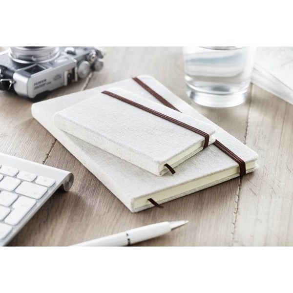 A6 zápisník s plátěnou obálkou a hnědou gumičkou