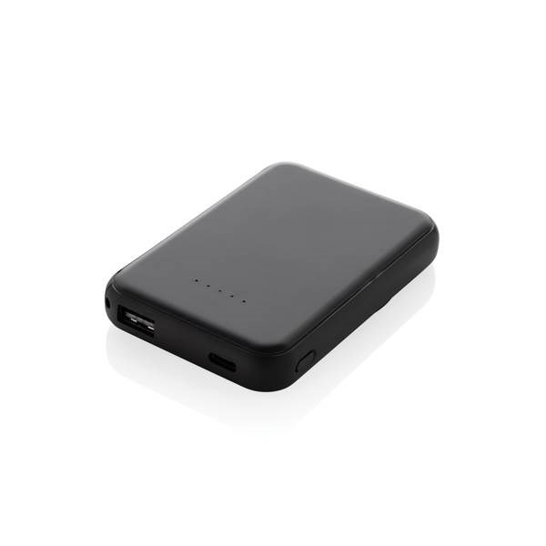 Kapesní powerbanka s kapacitou 5 000 mAh a 5W magnetickou bezdrátovou nabíječkou, jejíž pouzdro je vyrobeno z recyklovaného ABS plastu s certifikací RCS. RCS je standard pro ověření recyklovaného obsahu výrobku v celém dodavatelském řetězci. Celkový recyklovaný obsah: 20 % na základě celkové hmotnosti výrobku. S možností výstupu USB A a UCB C. Powerbanka obsahuje lithium-polymerovou baterii třídy A s dlouhou výdrží 5 000 mAh. Vstup typu C 5V/2,4A; výstup USB C /USB A:5V/2A.4A. Položka a příslušenství neobsahují PVC. Včetně recyklovaného nabíjecího kabelu TPE s certifikací RCS. Baleno ve směsném obalu FSC. V ceně zboží je zahrnut recyklační příspěvek na likvidaci elektroodpadů ve výši 1,00 Kč.