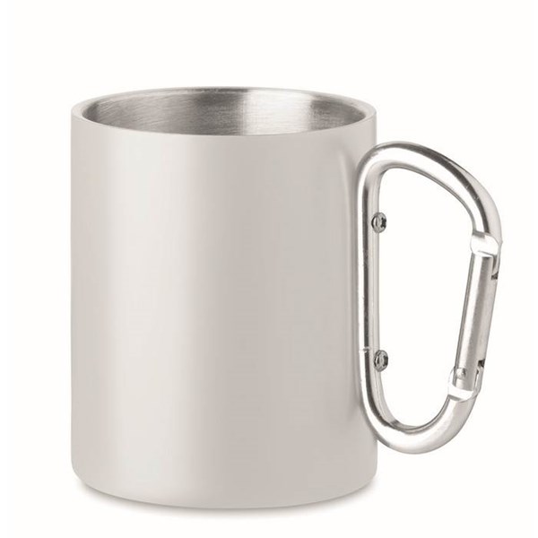 Sublimační nerezový retro hrnek s dvojitou stěnou a s karabinou. Objem 300 ml. Potisková plocha pro tampoprint a laserové rytí je max. 35x50 mm. Cenu sublimace (plocha 190x90 mm), nebo rotačního laserového rytí (plocha 210x80 mm) ve výrobě zkalkulujeme na dotaz.