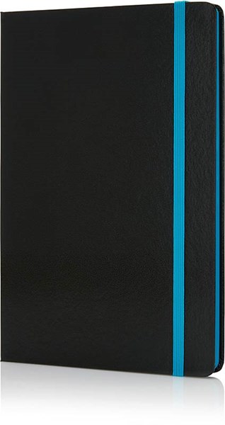 Poznámkový blok s tvrdými deskami s 160 listy papíru s gramáží 80 g. Okraje stránek ladí s barvou elastického popruhu.