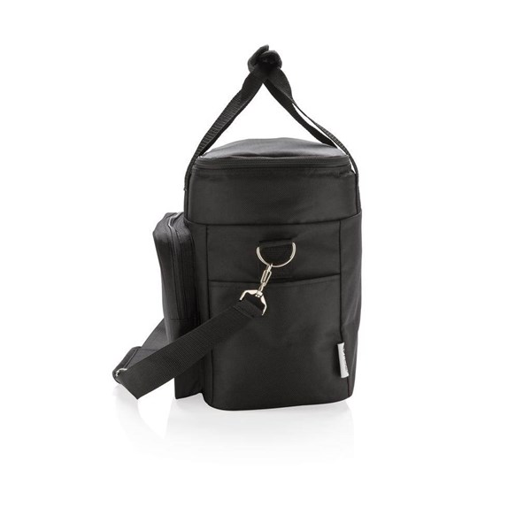 Elegantní chladící taška s obsáhlým hlavním oddílem až pro 20 plechovek a praktickou přední kapsou na zip má pohodlné, dvojitě vyztužené popruhy a odnímatelný popruh na rameno. Vyrobeno z polyesteru 1680D a 600D. Označeno značkou SWISS PEAK.