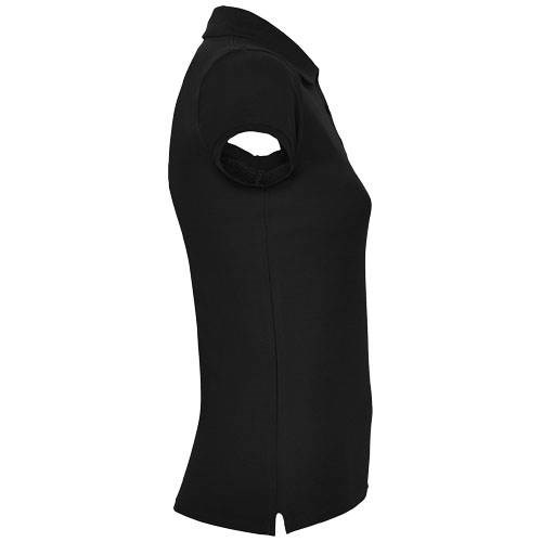 Dámské polo tričko s krátkým rukávem. Zesílené kryté švy ve vnitřním límci. Límec a manžety s žebrováním 1x1. Boční švy a vypasovaný střih. Úzké zapínání na 3 knoflíky. Boční rozparky. Odnímatelná etiketa. Piké úplet 100% bavlna, 200 g/m2.