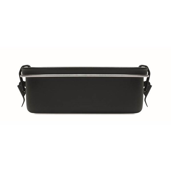 Obědová krabička z nerezu s těsnícím víkem s pákovým uzavíráním. Barva černá. Objem 750 ml.