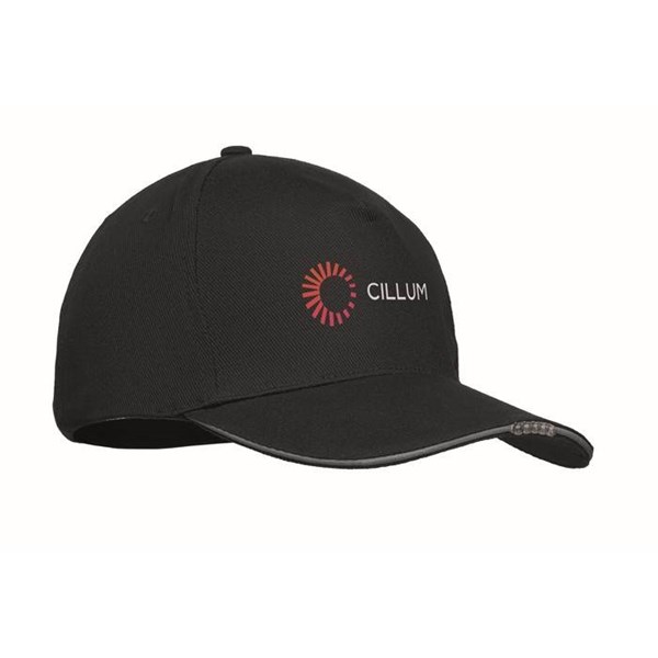Pětipanelová baseballová bavlněná čepice gramáže 220 g/m2 s LED světlem a kovovou sponou. Dodáváno včetně nabíjecího USB kabelu. V ceně zboží je zahrnut recyklační příspěvek na likvidaci elektroodpadů ve výši 2,00 Kč.