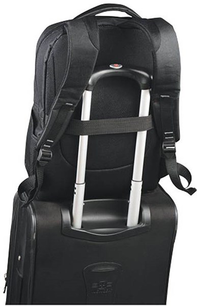Moderní batoh na notebook velikosti 15,6" s velkou přední kapsou na zip s karabinkou na klíče a speciální kapsou s technologií blokování RFID, v níž můžete přechovávat své karty a cestovní pas bez rizika krádeže identity.Velký hlavní prostor na zip pro notebook 15,6" a samostatná přihrádka na iPad nebo tablet. Přední vertikální zip pro rychlý přístup k přední kapse. 2 přídavné boční kapsy nabízejí další úložný prostor a popruhy jsou nastavitelné a polstrované.Přepravní ucho a popruh k připevnění na zavazadlo usnadňují cestování. Materiál polyester 300D s PU vinylovými doplňky.