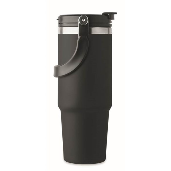 Dvoustěnný hrnek z recyklované nerezové oceli (90 % recyklované nerezové oceli a 10 % nerezové oceli) s víčkem s vnitřním brčkem a otvorem pro přímé pití. Rukojeť pro přenášení. Objem 850 ml.
