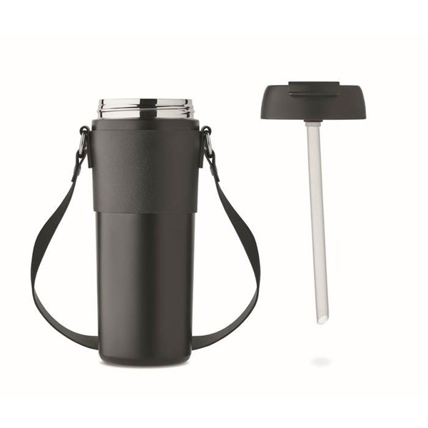 Černý termohrnek 700 ml s PP víčkem a popruhem