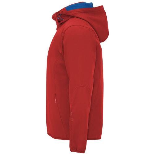 Dvouvrstvý softshell ve sportovním střihu. Kontrastní středový zip s ochranou brady a taháčkem. Vnitřní podšívka z kontrastní mikrofleecové tkaniny. Vnější kapsa na pravé straně hrudníku s neviditelným zipem v diagonálním tvaru. Dvě boční kapsy s neviditelným zipem. Kapsa na levém rukávu. Odpovídající elastické lemování manžet a spodního lemu. Sklopná kapuce s kontrastní mikropolární podšívkou. Odnímatelný štítek. Nepromokavá. Odolná proti větru. Materiál 92% polyester a 8% elastane, 300 g/m2, podšívka micro fleece 100% polyester.