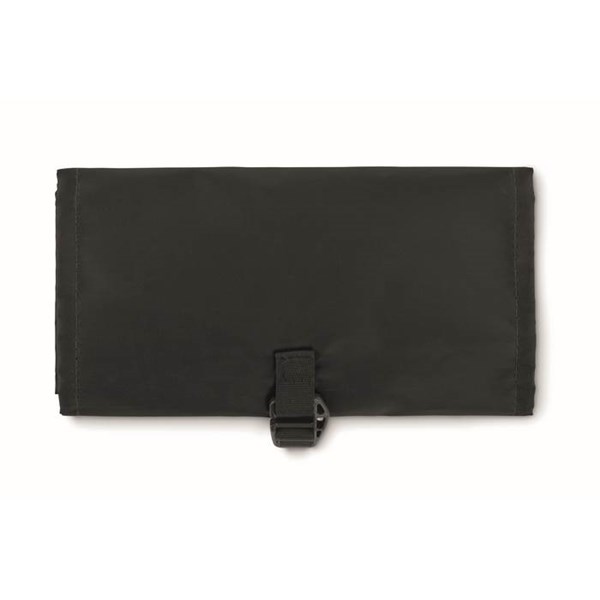 Rolovací organizér na kabely z materiálu 210D RPET. 3 přihrádky na zip. Tuto brašnu lze použít i jako kosmetickou tašku.