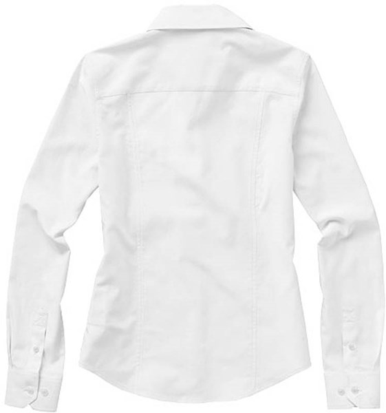 Dámská košile značky ELEVATE gramáže 140g/m2 s dlouhým rukávem. Dámský střih mírně propasovaný. Bílé knoflíčky s gravírováním loga Elevate. Druhá knoflíková dírka od spodního lemu s oranžovým stehováním. Logo tištěné v barvě na zádech. Hedvábné lemování vnitřního výstřihu. Manžetky se dvěma knoflíčky pro nastavení velikosti. Rozparek rukávu se zapínáním na knoflík. Materiál 100% bavlna.