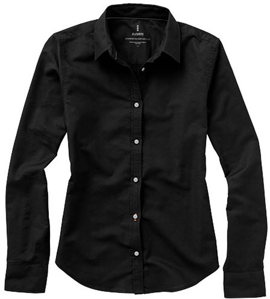 Dámská košile značky ELEVATE gramáže 140g/m2 s dlouhým rukávem. Dámský střih mírně propasovaný. Bílé knoflíčky s gravírováním loga Elevate. Druhá knoflíková dírka od spodního lemu s oranžovým stehováním. Logo tištěné v barvě na zádech. Hedvábné lemování vnitřního výstřihu. Manžetky se dvěma knoflíčky pro nastavení velikosti. Rozparek rukávu se zapínáním na knoflík. Materiál 100% bavlna.