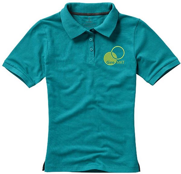 Dámská polokošile značky ELEVATE ze 100% bavlny, vysrážená, piqué steh, žebrovaný 1x1 límec a manžeta na rukávu. Saténový pásek vypodložení u krku. Vypodložené saténové rozparky po stranách. Logo vytištěné na zadním dílu trička.Přední díl na čtyři knoflíky s vyrytým logem v barvě košile.