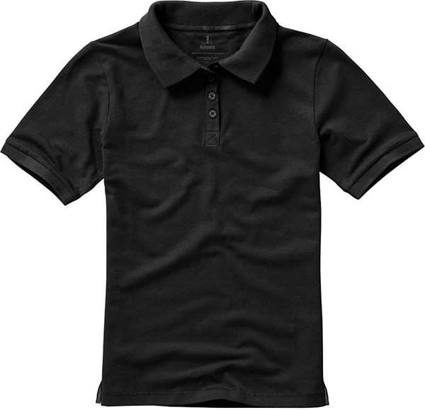 Dámská polokošile značky ELEVATE ze 100% bavlny, vysrážená, piqué steh, žebrovaný 1 x 1 límec a manžeta na rukávu. Saténový pásek vypodložení u krku. Vypodložené saténové rozparky po stranách. Logo vytištěné na zadním dílu trička. Přední díl na čtyři knoflíky s vyrytým logem v barvě košile.