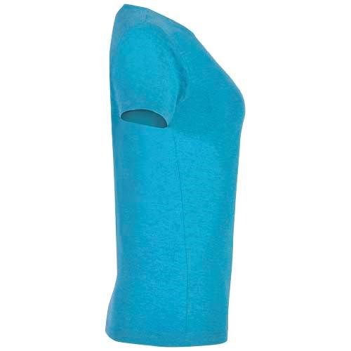 Dámské tričko značky ROLY s krátkým rukávem a melírovým efektem vyrobené z jednolícního žerzeje ve složení 65% polyester a 35% bavlna. Gramáž 150 g/m2. Tričko je bezešvé (tubusový tvar) a má 1x1 žebrovaný výstřih ke krku s vnitřními zesílenými krytými švy, dámská varianta je mírně vypasovaná.