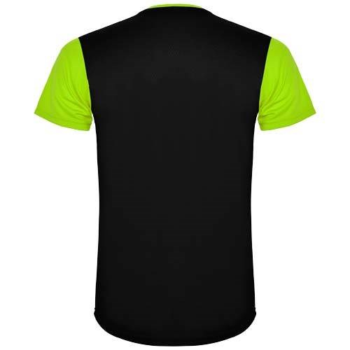 Dětské sportovní tričko značky ROLY s kulatým výstřihem z rychle schnoucí, prodyšné tkaniny ze 100% Cool Fit Polyesteru. Gramáž 130 g/m2. Tričko je vyrobeno v kombinaci dvou polyesterových látek na zádech a ramenou. Látka tzv. „ptačí oko“ na předním díle a prodyšná 3D síťovina na zádech. Materiál dobře absorbuje vlhkost. Ozdobný klikatý zadní steh na bocích a na ramenou. Zadní díl je mírně delší. Obvykle baleno hromadně po více kusech v jednom sáčku. Kusové dodávky mohou být jednotlivě baleny v sáčku.