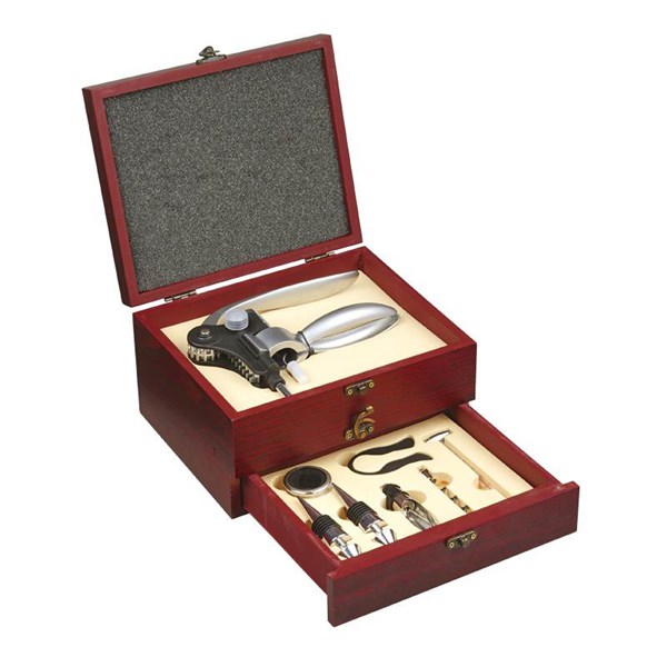 Dřevěná sada na víno se zásuvkou na příslušenství