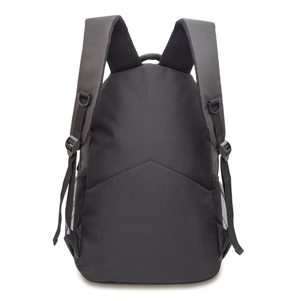Praktický a pevný polyesterový batoh má hlavní přihrádku uzavíratelnou zesíleným zipem, malou vnitřní kapsu na zip, velkou přední kapsu na zip, 2 boční síťované kapsy, 2 boční popruhy s přezkami a otvor na sluchátka. Podšívka je z polyesteru 210T. Měkká záda a ramenní popruhy. Objem 16 l.