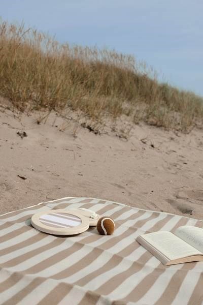Ideální venkovní hra na pláž nebo do parku. Obsahuje jeden míček a dva chytače na suchý zip, vyrobené z překližky s certifikátem FSC. Design je sportovní, ale zároveň rafinovaný s dvoubarevným pruhovaným vzorem na chytačích a hnědým míčkem. Hra je zabalena v plátěné tašce. Součástí balení je leták s návodem.