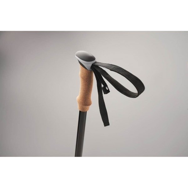 Nastavitelné hůlky na nordic walking z hliníku s korkovou rukojetí, vycházkovými gumovými špičkami a košíčky na bláto. Dodáváno v RPET ripstopovém pouzdře. Plně nastavitelné: 65 cm až 135 cm. Potisk na pouzdro.