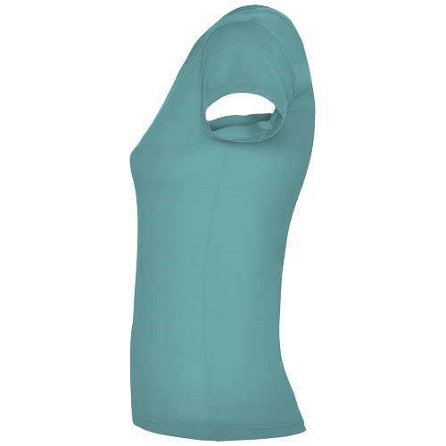Dámské tričko s krátkým rukávem a výstřihem do V s úpravou 1x1 žebrování. Úzký střih s bočními švy. Odnímatelný štítek. Před objednáním si prosím zkontrolujte velikost (tabulku velikostí textilu Roly naleznete na našem webu, případně Vám ji rádi zašleme na vyžádání). Textil Roly se řídí španělskou velikostí, která má přiléhavější střih. Materiál: Jednolícní žerzej 100% Bavlna, 155 g/m2.