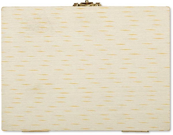 Malířský set v dřevěném kufru obsahuje 8 pastelek, 12 vodových barev, 1 štětec, ořezávátko, gumu a 1 tužku.