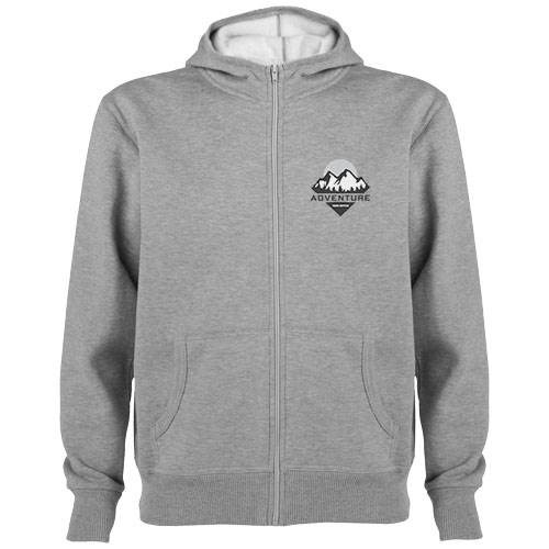 Mikina s kapucí, vysokým výstřihem a celorozepínacím zipem. Žebrované detaily v kapuci a lemování kapes. Kapsa ve stylu klokanky. Manžety a pas s žebrováním 2x2. Odnímatelný štítek. Úplet 55% bavlna, 40% polyester,5% viskóza. Gramáž 280 g/m2.
