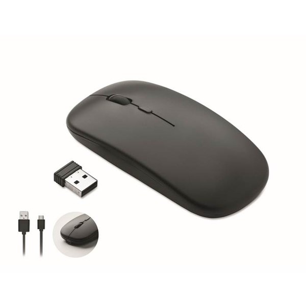 Bezdrátová optická myš z ABS s USB dobíjecí baterií 500 mAh. V ceně zboží je zahrnut recyklační příspěvek na likvidaci elektroodpadů ve výši 0,84 Kč.