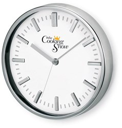 Stříbrné nástěnné hodiny s bílým ciferníkem