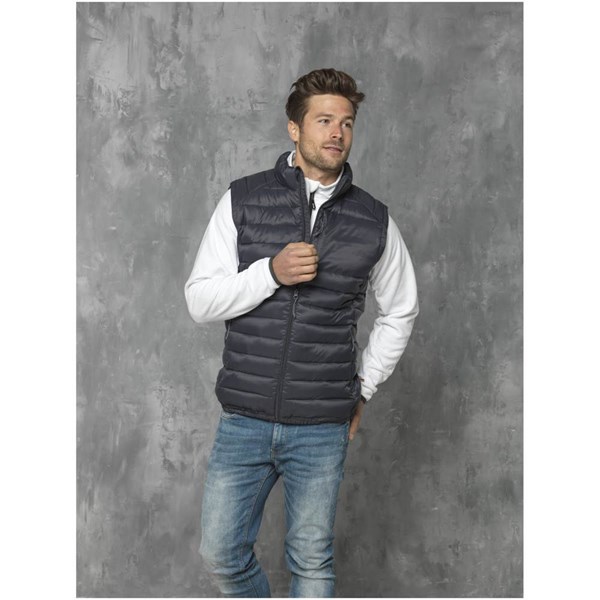 Vesta s izolační vrstvou pro muže. Možnost značení uvnitř. Odtrhávací štítek pro větší pohodlí. Vnitřní chlopeň s ochranou brady. Náprsní kapsa na zip. Kapsy na ruce na zip. Elastický lem. Přední reverzní zip. Táhla zipu s příjemným gripem. Šatnové poutko. Vyrobená ze 100% nylonu, 380T s hladkou povrchovou úpravou. 38 g/m².
