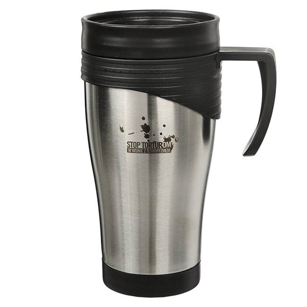 Nerez. termohrnek 400 ml, černé plast.ouško a víčko