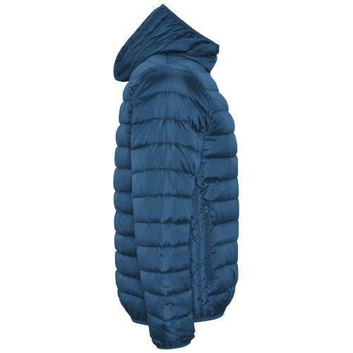 Pánská prošívaná bunda ze 100% polyesteru gramáže 290g/m2 s péřovým efektem a s kapucí. Středový zip s ochranou brady ve shodném odstínu bundy. Dvě boční kapsy na zip. Elastické lemování manžet, spodního lemu a kapuce ve shodném odstínu bundy. Podšívka v kontrastní barvě. Součástí balení je taštička na složení bundy. Lehký oděv s možností složení. Nepromokavá. Odolná vůči větru. Materiál 100% Polyester. Podšívka a výplň 100% Polyester.