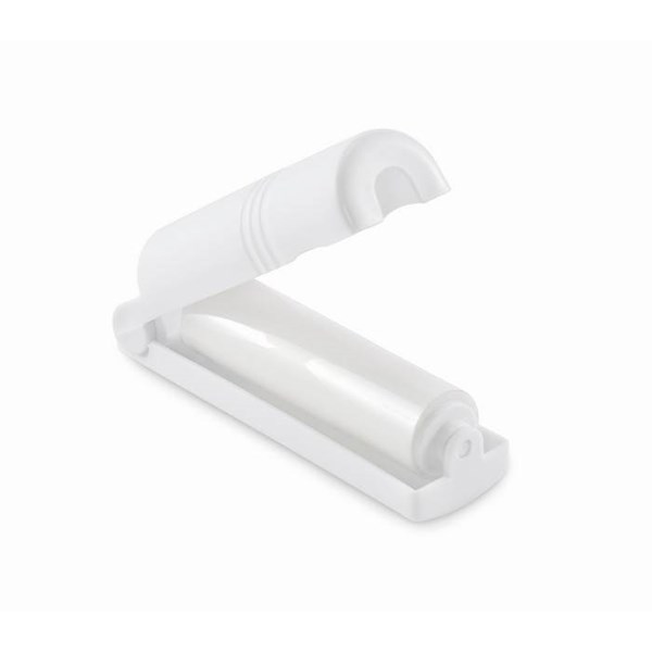 Opakovaně použitelný a omyvatelný lepivý čistící váleček na oblečení v praktickém obalu z bílého plastu s klopou na uzavření. Lepivý váleček je před prvním použitím zabalený v průhledném plastu, po stržení je připraven k použití. Obvykle kusově baleno v bílé transportní kartonové krabičce. Vyrobeno z PP a TPR plastu.
