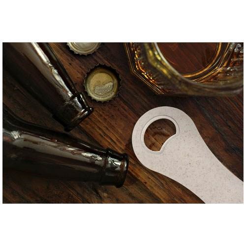 Otvírák na lahve z pšeničné slámy a nerezové oceli pro otevírání lahví piva, nealkoholických nápojů apod. Pšeničná sláma zůstává po sklizni pšeničných zrn, což snižuje množství použitých plastů.