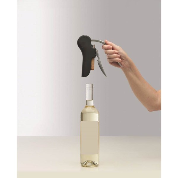 Páková vývrtka z ABS s pogumovaným povrchem a nerezové oceli. Potisk tampoprintem z boku cca 20x20mm, nebo 40x7 mm - kalkulaci potisku ve výrobě stanovíme na dotaz (nelze tisknout bílou barvu).