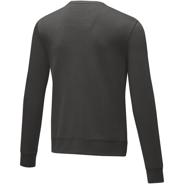 Pánský svetr s kulatým, plochým žebrovým výstřihem, žebrový úplet manžetek a spodního lemu. Kartáčovaný materiál na vnitřní straně. Zpevňující kontrastní lemovka výstřihu ve shodné tkanině. Složení 50% bavlna, 50% polyester, gramáž 240 g/m2.