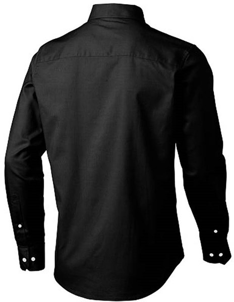 Pánská košile značky ELEVATE gramáže 140g/m2 s dlouhým rukávem. Pánský střih s límečkem na knoflíčky. Bílé knoflíčky s gravírováním loga Elevate. Druhá knoflíková dírka od spodního lemu s oranžovým stehováním. Logo tištěné v barvě na zádech. Hedvábné lemování vnitřního výstřihu. Manžetky se dvěma knoflíčky pro nastavení velikosti. Rozparek rukávu se zapínáním na knoflík. Materiál 100% bavlna.