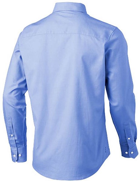 Pánská košile značky ELEVATE gramáže 140g/m2 s dlouhým rukávem. Pánský střih s límečkem na knoflíčky. Bílé knoflíčky s gravírováním loga Elevate. Druhá knoflíková dírka od spodního lemu s oranžovým stehováním. Logo tištěné v barvě na zádech. Hedvábné lemování vnitřního výstřihu. Manžetky se dvěma knoflíčky pro nastavení velikosti. Rozparek rukávu se zapínáním na knoflík. Materiál 100% bavlna.
