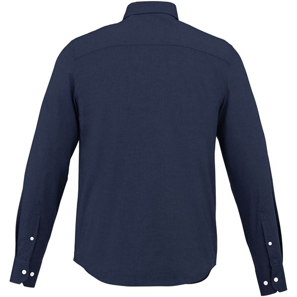 Pánská košile značky ELEVATE gramáže 140g/m2 s dlouhým rukávem. Pánský střih s límečkem na knoflíčky. Bílé knoflíčky s gravírováním loga Elevate. Druhá knoflíková dírka od spodního lemu s oranžovým stehováním. Logo tištěné v barvě na zádech. Hedvábné lemování vnitřního výstřihu. Manžetky se dvěma knoflíčky pro nastavení velikosti. Rozparek rukávu se zapínáním na knoflík. Materiál 100% bavlna.