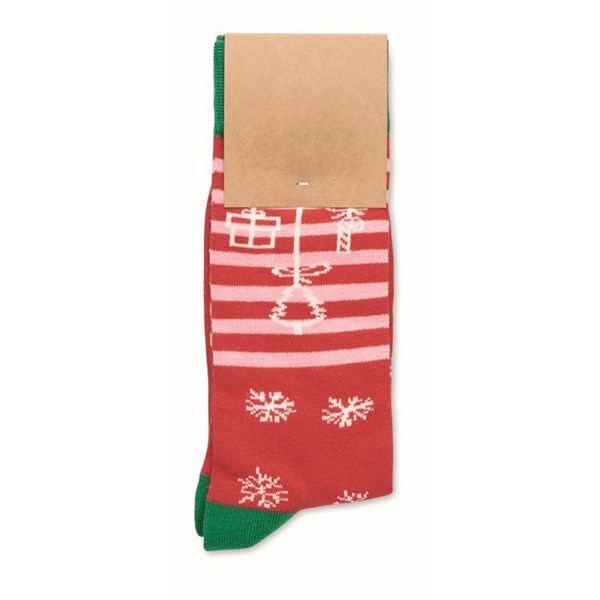 Pár vánočních ponožek ze 75 % bavlny, 23 % polyesteru RPET a 2 % spandexu. Dodáváno v dárkové krabici. Velikost L = 43-46.
