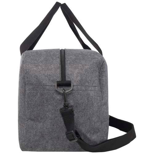 Praktická sportovní taška vyrobená ze špičkové měkké a odolné recyklované plsti s certifikací GRS. Obsahuje velkou hlavní přihrádku, přední kapsu na zip, boční kapsu, odnímatelné a nastavitelné ramenní popruhy a pohodlná bavlněná ucha pro různé způsoby nošení. Vybaveno malými nožičkami/cvoky na dně, takže se taška nedotýká země, což pomáhá předcházet tomu, aby se taška neznečistila nebo nenavlhla. Objemová kapacita: 35 litrů. Materiál: GRS certified recycled polyester.