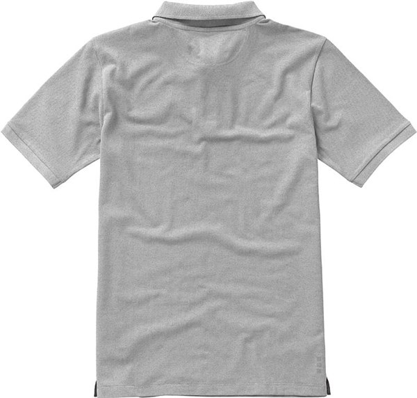 Polokošile značky ELEVATE z 90% bavlny a 10% viskózy, vysrážená, piqué steh, žebrovaný 1 x 1 límec a manžeta na rukávu. Saténový pásek vypodložení u krku. Vypodložené saténové rozparky po stranách. Logo vytištěné na zadním dílu trička. Dva knoflíky s vyrytým logem v barvě košile.