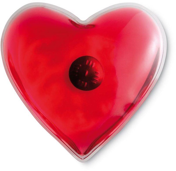 Červený polštářek ve tvaru srdce slouží k ohřátí rukou nebo malých ploch, lze jej použít vícenásobně - znovu použitelný je po cca 15 minutách ohřevu v teplé vodě. Nevyžaduje žádné baterie.