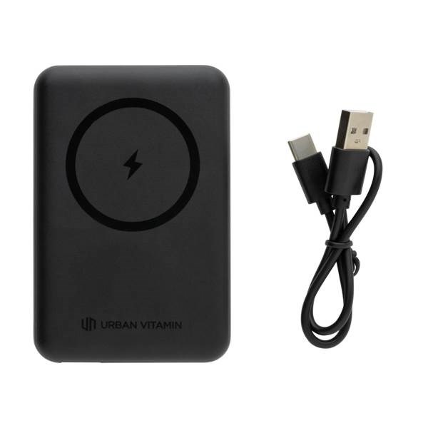 Kompaktní rychlá powerbanka Urban Vitamin s kapacitou 5 000 mAh a 10 W magnetickou bezdrátovou nabíječkou. Zabudovaný stojánek, pro udržení telefonu v ideálním sledovacím úhlu. USB C PD 20 W umožňuje extrémně rychlé nabíjení, na 50 % kapacity běžného telefonu nabije již za 30 minut. Dodatečný USB A výstup umožňuje nabíjení dalšího zařízení najednou. Vyrobeno z RCS recyklovaného ABS plastu. RCS (Recycled Claim Standard) je globální standard, který umožňuje ověřit použití recyklovaného materiálu v produktu napříč celým dodavatelským řetězcem. Celkový podíl recyklátu dle váhy produktu: 13 %. Produkt i příslušenství bez PVC. Baleno v dárkovém balení Urban Vitamin s minimálním obsahem plastů. Výstup USB A: 5V/3A, 9V/2A, 12V/1,5A; USB C: 5V/3A, 9V/2,22A, 12V/1,5A (PD 20W). V ceně zboží je zahrnut recyklační příspěvek na likvidaci elektroodpadů ve výši 1,00 Kč.