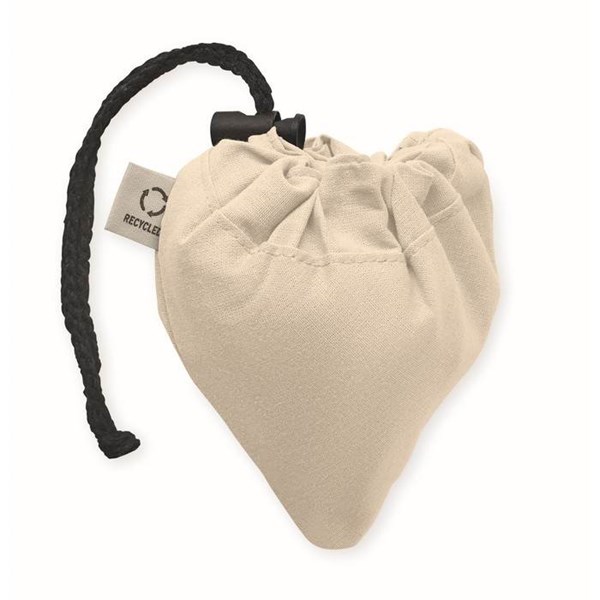 Skládací nákupní taška z recyklované bavlny (70 % recyklované bavlny a 30 % RPET). 140 gr/m². Tento produkt se po tisku může srazit.