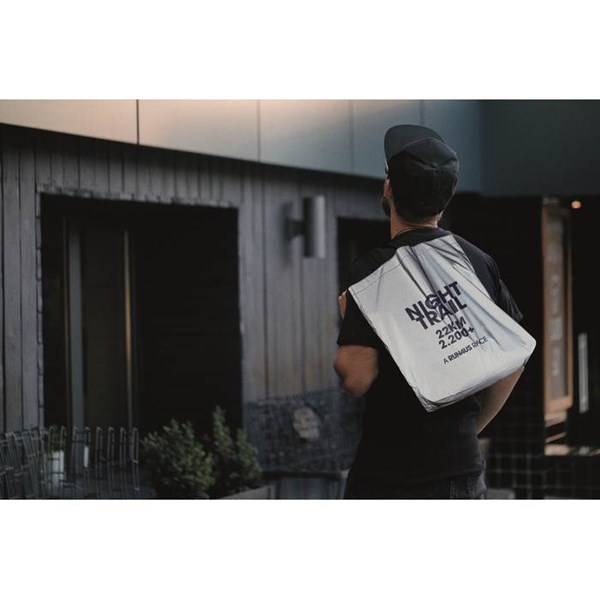 Reflexní 190D polyesterová nákupní taška s dlouhými uchy.