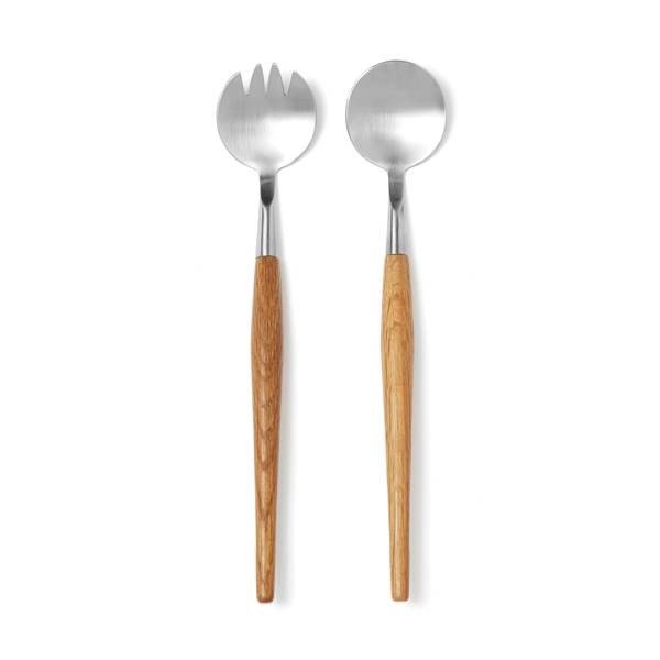 Ocelové servírovací příbory s dubovými rukojeťmi. Klasické a minimalistické provedení v čistém skandinávském stylu. Nádobí je ideální pro domácí večeře a speciální jídla. Baleny v exkluzivní dárkové krabičce.