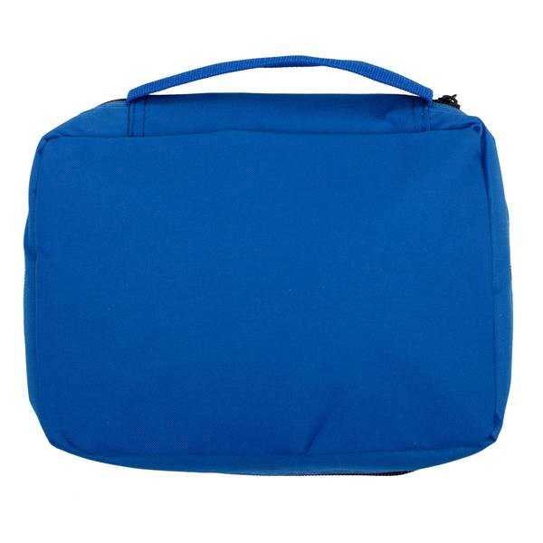 Kosmetická taška na zip z voděodolného polyesteru 600D s PU zátěrem s věšáčkem, malou a velkou síťovanou kapsou na zip, kapsou na lahve a 3 menšími kapsami. Materiál: polyester 600D.
