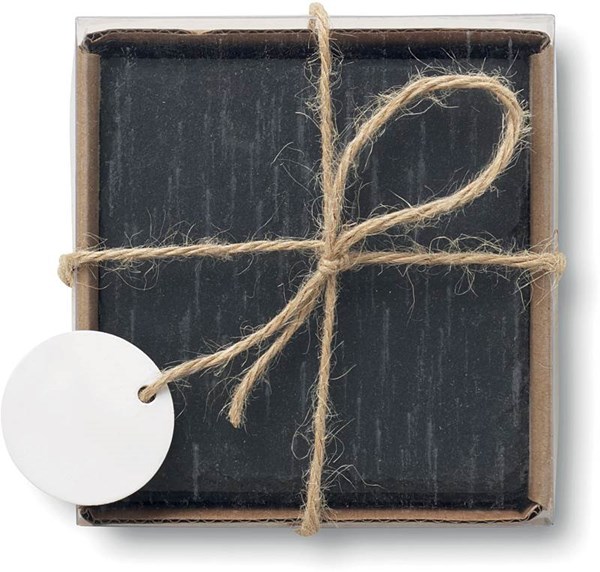 Sada čtyř břidlicových podložek pod sklenice se spodním potahem z EVA materiálu.