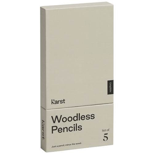 Sada 5 grafitových tužek Karst®, která nabízí 5× více grafitu v každé tužce. Bezdřevé tělo lze nabrousit pro ostrou práci s linkami nebo ztupit pro výrazné tahy nebo jemné stínování. Bezdřevá konstrukce umožňuje všestrannost a zároveň nevytváří nepořádek z tradičních dřevěných hoblin. Vyšší váha těchto tužek působí v ruce luxusně, ať už píšete, čmáráte nebo kreslíte. Uvedená cena je za 1 sadu (tedy za 5 ks tužek).