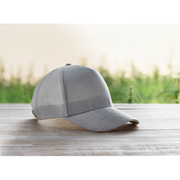 Šedá pětidílná čepice z konopí s kov. sponou